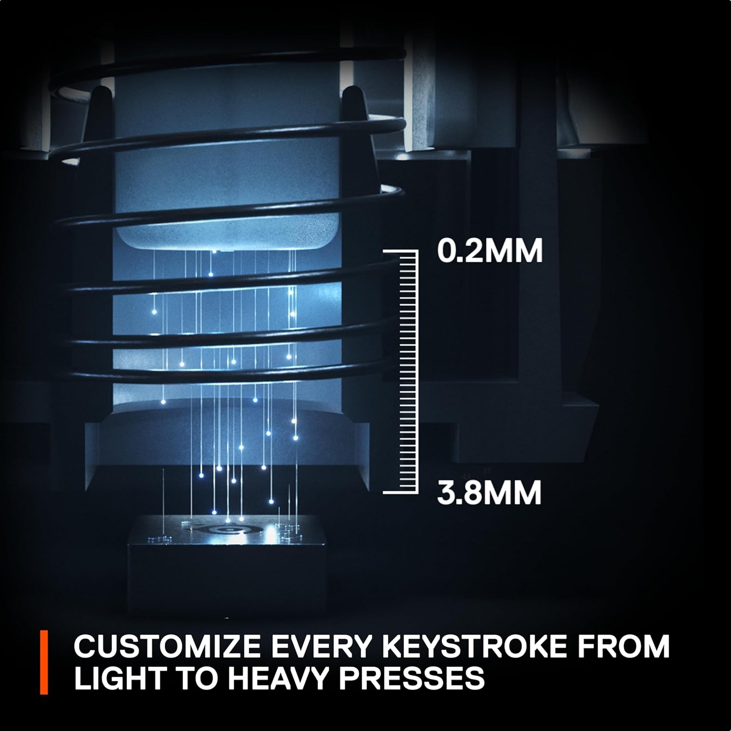 ULTIMATE CONTROL — 40 levels of per-key actuation (0.1 – 4.0mm) – set WASD for light, ultra-fast movements and set ability keys to deep presses to avoid accidentally triggering specials