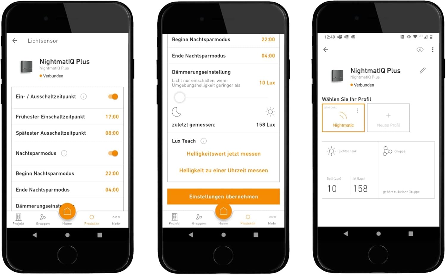 Easy adjustment via app: Twilight value from 1-1000 lx (or with TEACH function), timer and night economy mode can be selected via Steinel Connect app