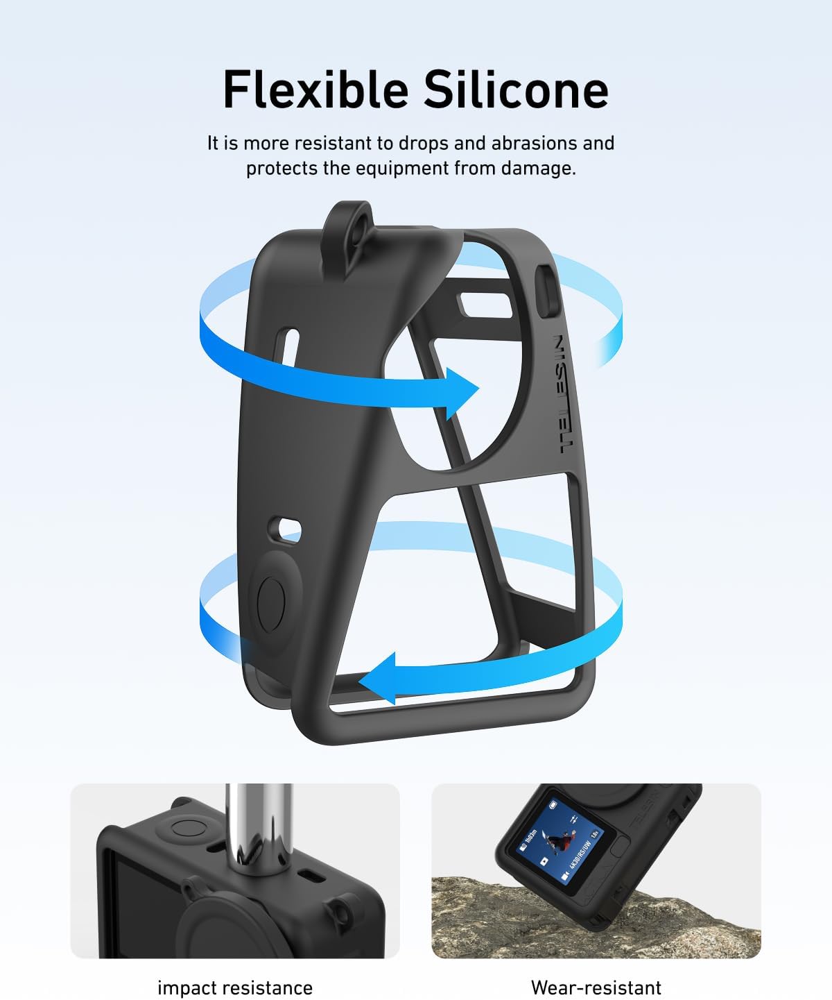 【Soft Silicone Full-Body Protection】Made from premium flexible silicone, the case delivers reliable shockproof and scratch-resistant protection. It cushions your DJI Osmo Action 6 against drops, bumps, and daily wear without adding bulk.