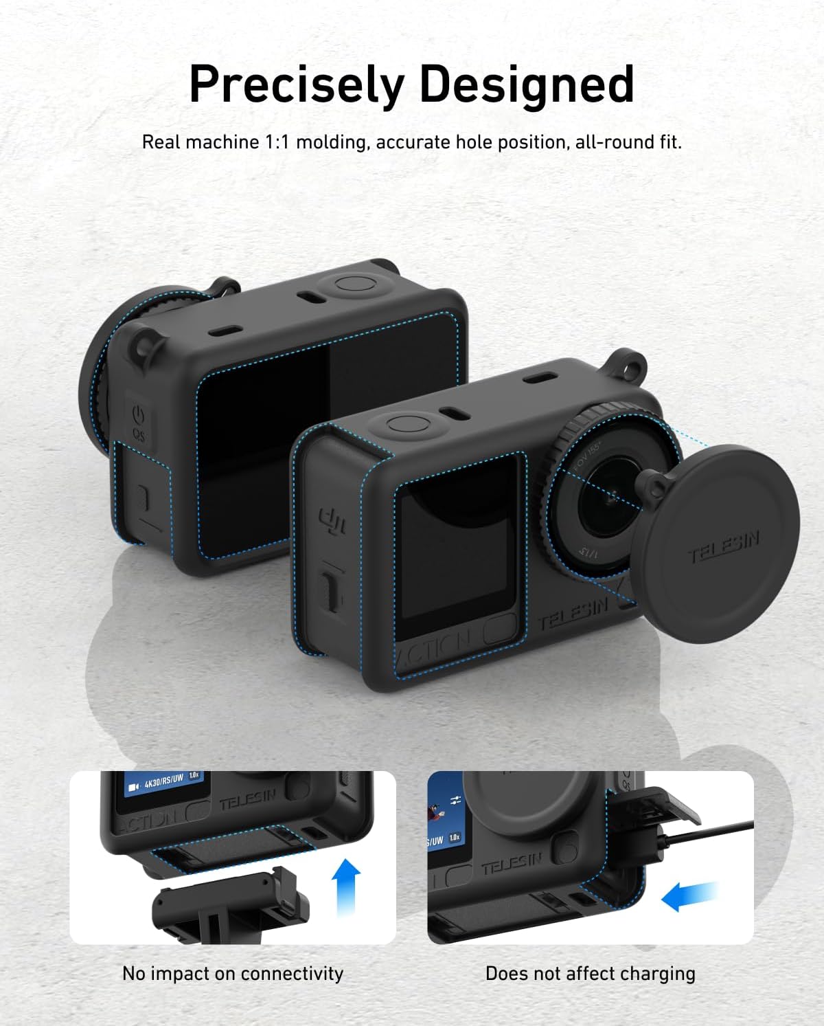 【Custom-Fit for DJI Action 6】Precision-engineered 1:1 to the real camera, this silicone protective case fits the DJI Action 6 perfectly. All buttons, ports, and microphones remain fully accessible without removing the case.