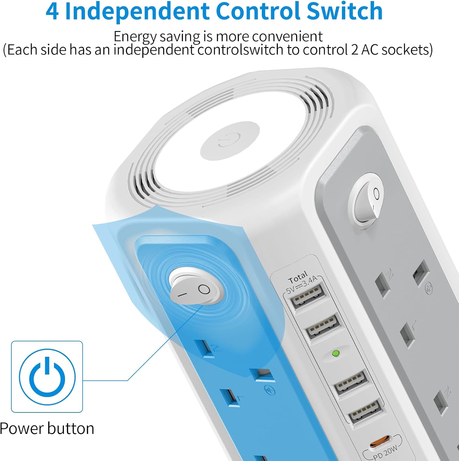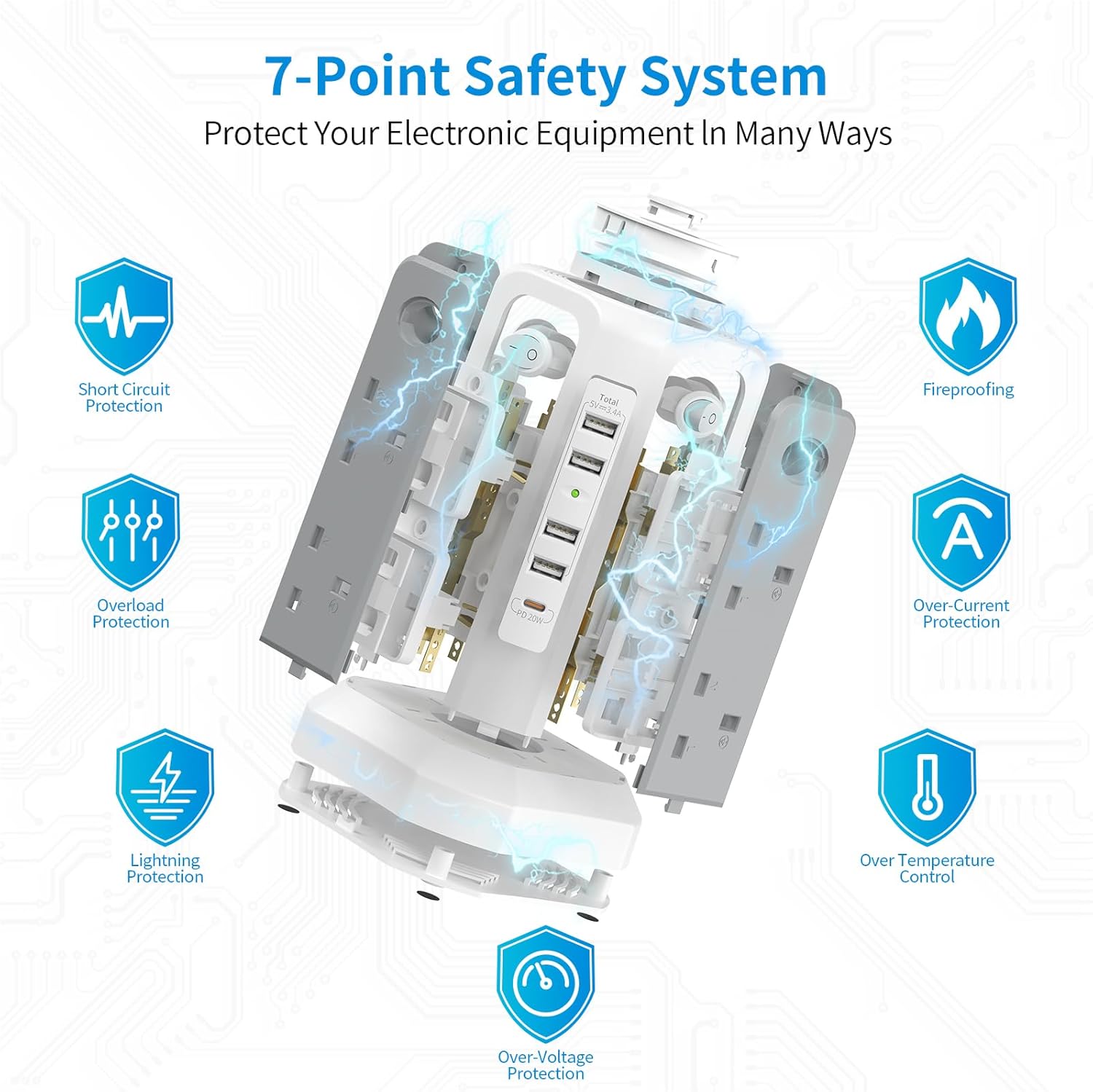 【Safe & Reliable Surge Protector Extension Lead】: To protect you and your valuable electronic devices, this universal power tower has advanced protection technology andFCC, CE safety certification