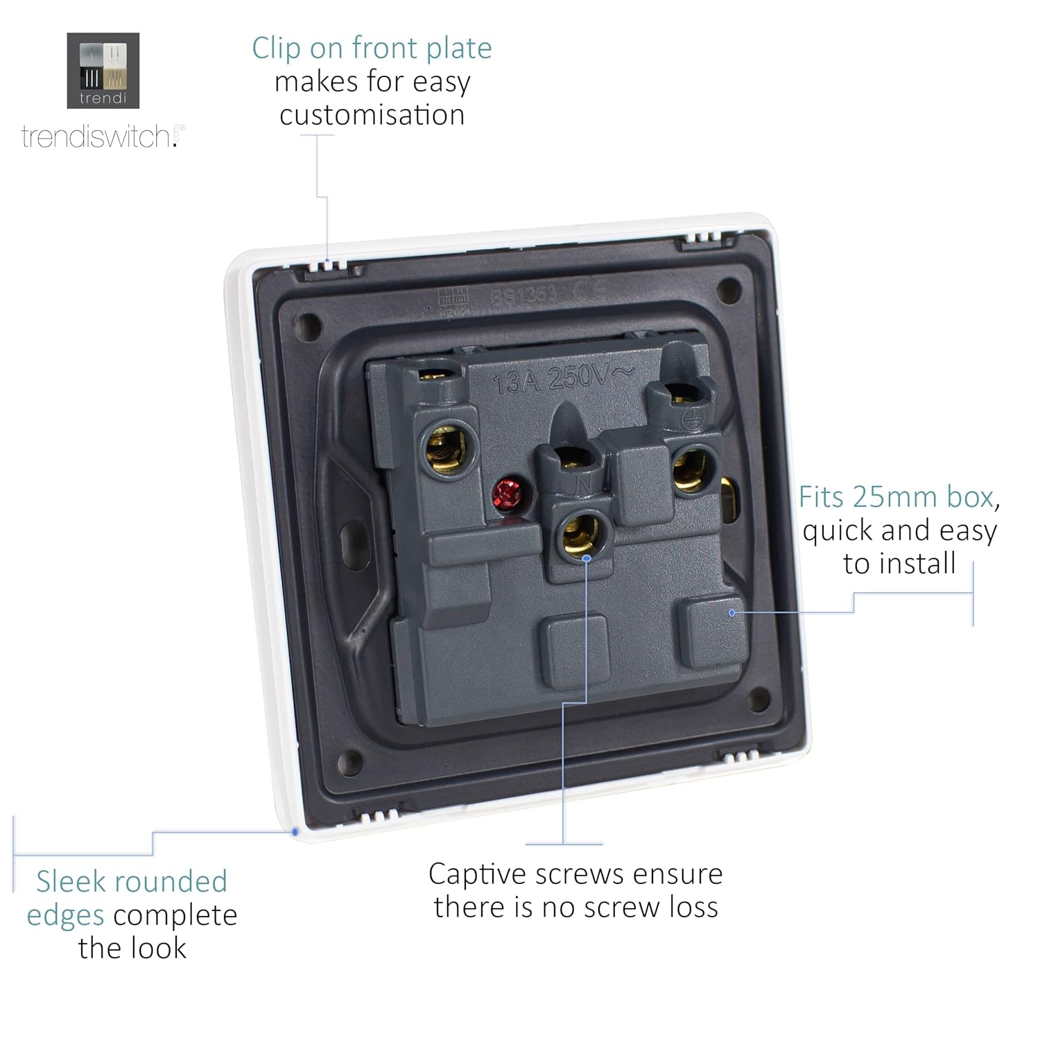 PROTECTION GUARANTEED: TrendiSwitch guarantees a five year warranty period where your socket will be protected against scratches, fading or malfuctioning – so you can feel at ease