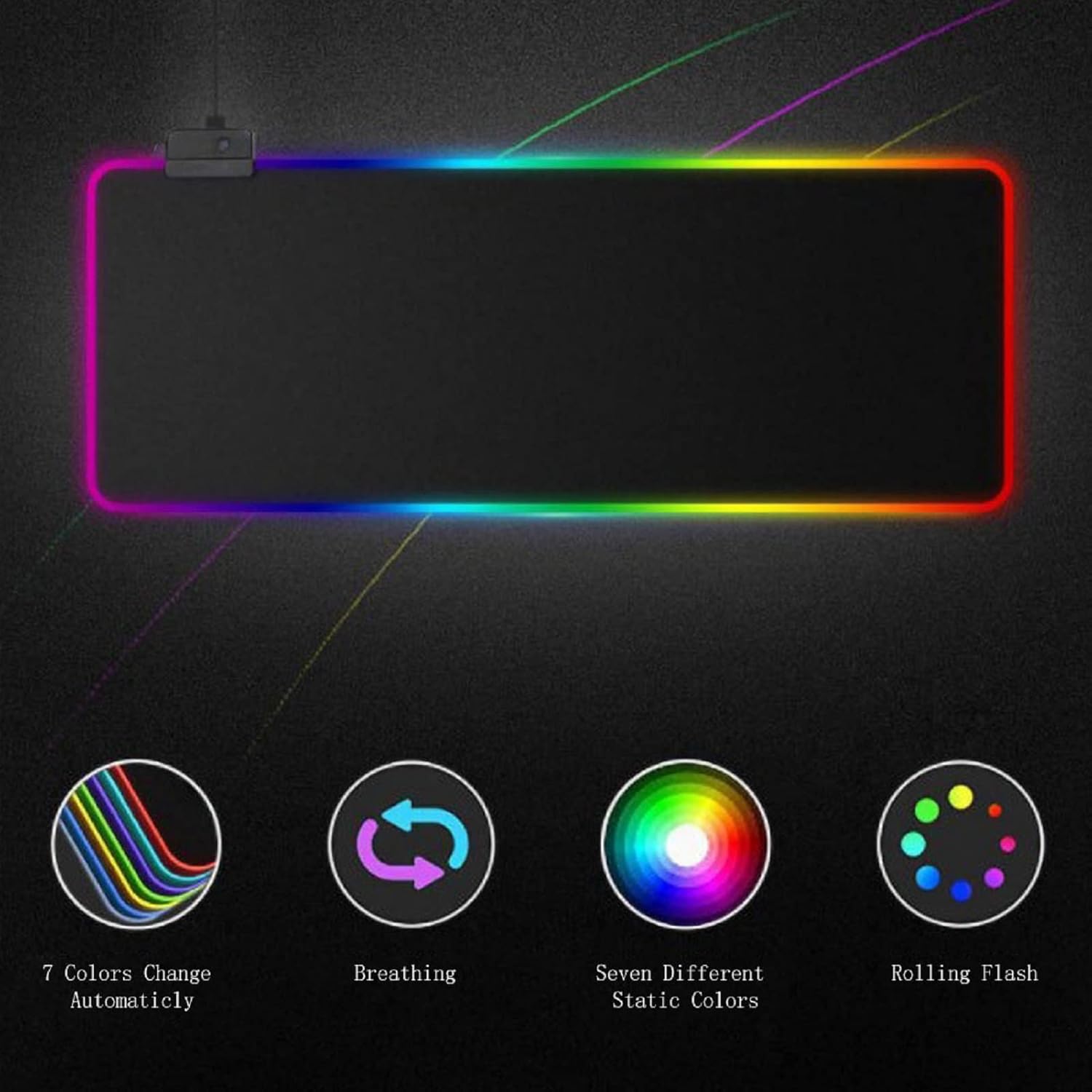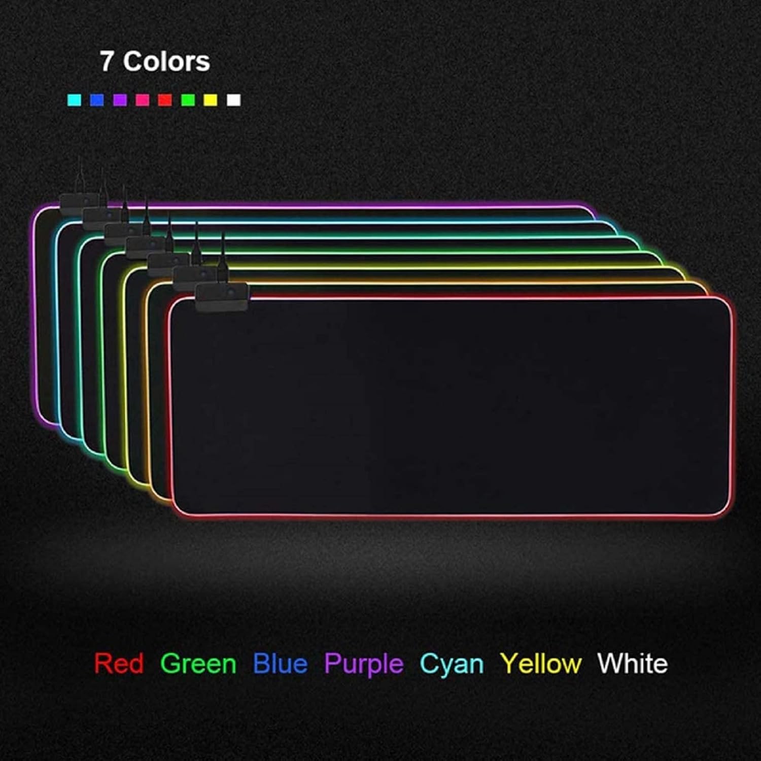 [RGB LED backlight] RGB gaming mouse pad has 7 RGB lighting effect modes, including red, blue, green, purple, cyan, yellow, and white, giving you a dual experience of senses and touch, with amazing colors and effects.