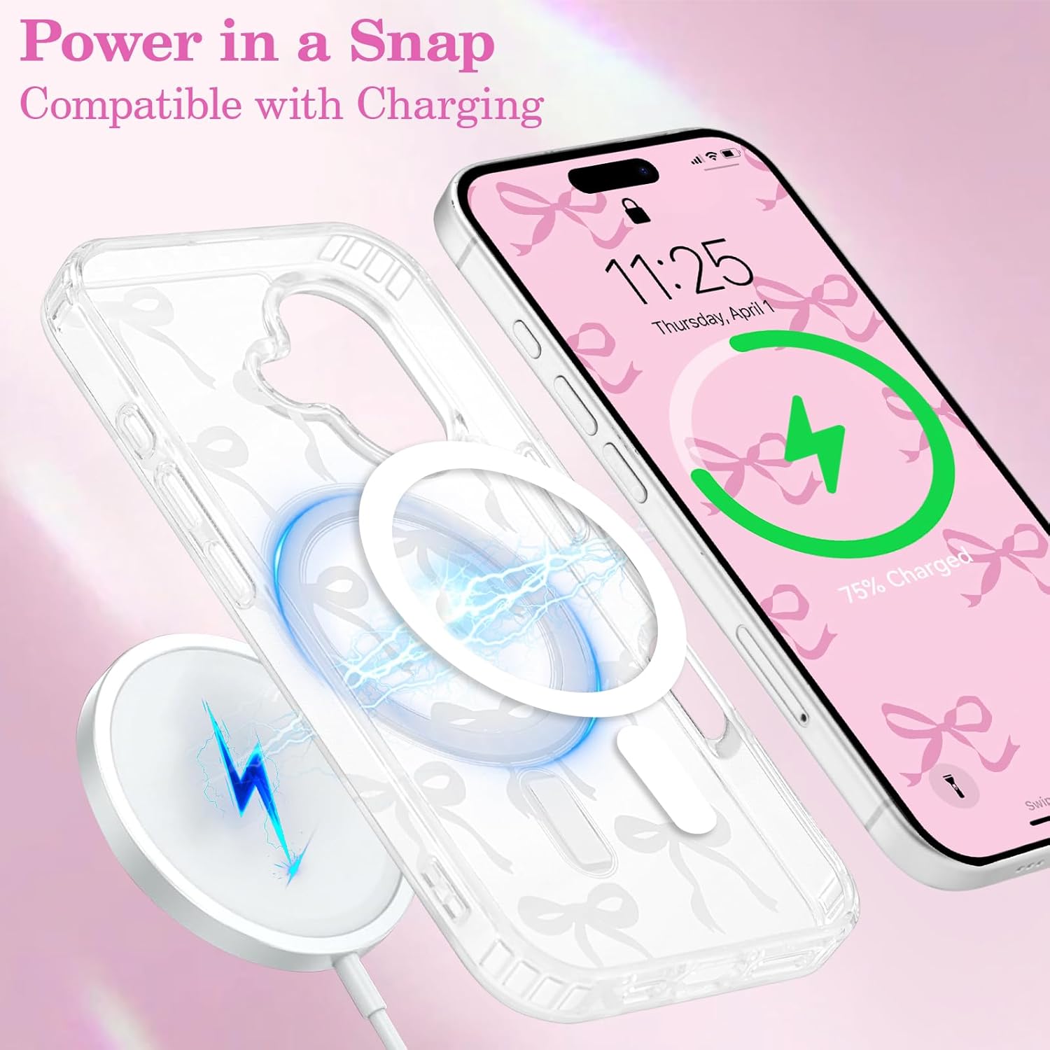 🎀【Premium Material】 This cute case is made of high quality TPU, which is tough to withstand daily bumps and scratches; UEEBAI bows phone case looks slim and light, comfortable to hold; Pretty transparent case is the best gift for women and girl