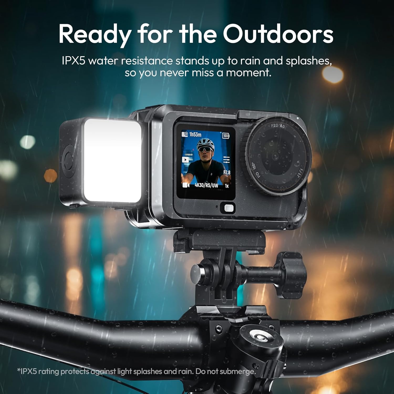 【IPX5 Waterproof – Ready for the Outdoors】This mini LED light attachment for DJI Osmo Action 6/Nano is IPX5 water resistance defends against rain and splashes, standing up to all outdoor shooting conditions. Shoot fearlessly in wet weather and water-adjacent scenes or during intense sports, never miss a single precious moment of your adventure. NOT FIT for submersion in water, such as diving, swimming, or bathroom, direct exposure to waves/surf.
