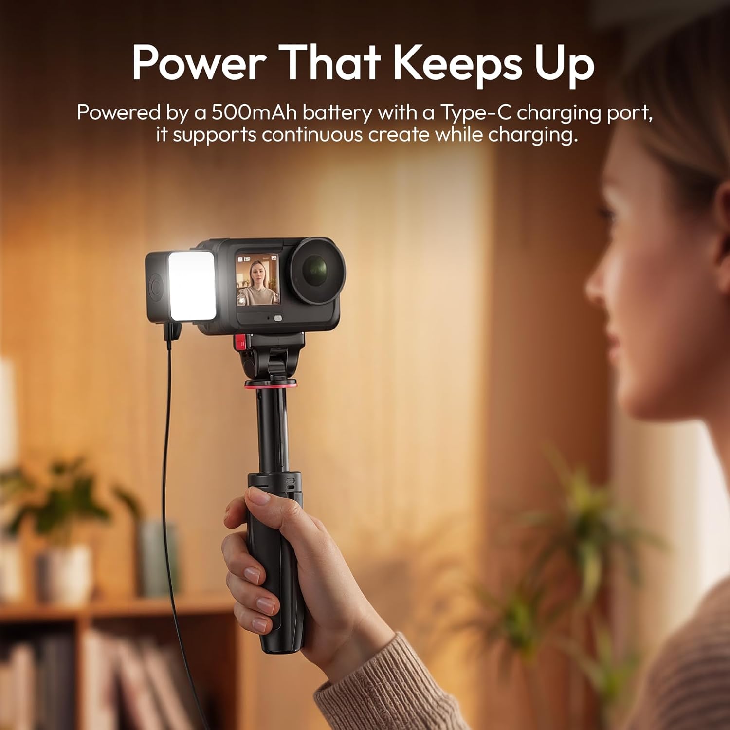 【Tiny Body, All-Day Power】This magnetic fill light perfectly matches the on-the-go shooting needs for DJI Osmo Action 6/Nano. At just 1.61*1.54*0.91inches, weighs 1.09oz. This mini camera light equipped with a 500mAh rechargable battery offers up to 1-hour runtime at max brightness & 8-hour runtime at min brightness; Type-C port enables charging while in use for non-stop shooting. Ideal for vlogger, bloggers, travelers, content creators, photographers, videographers, action sports shooters.