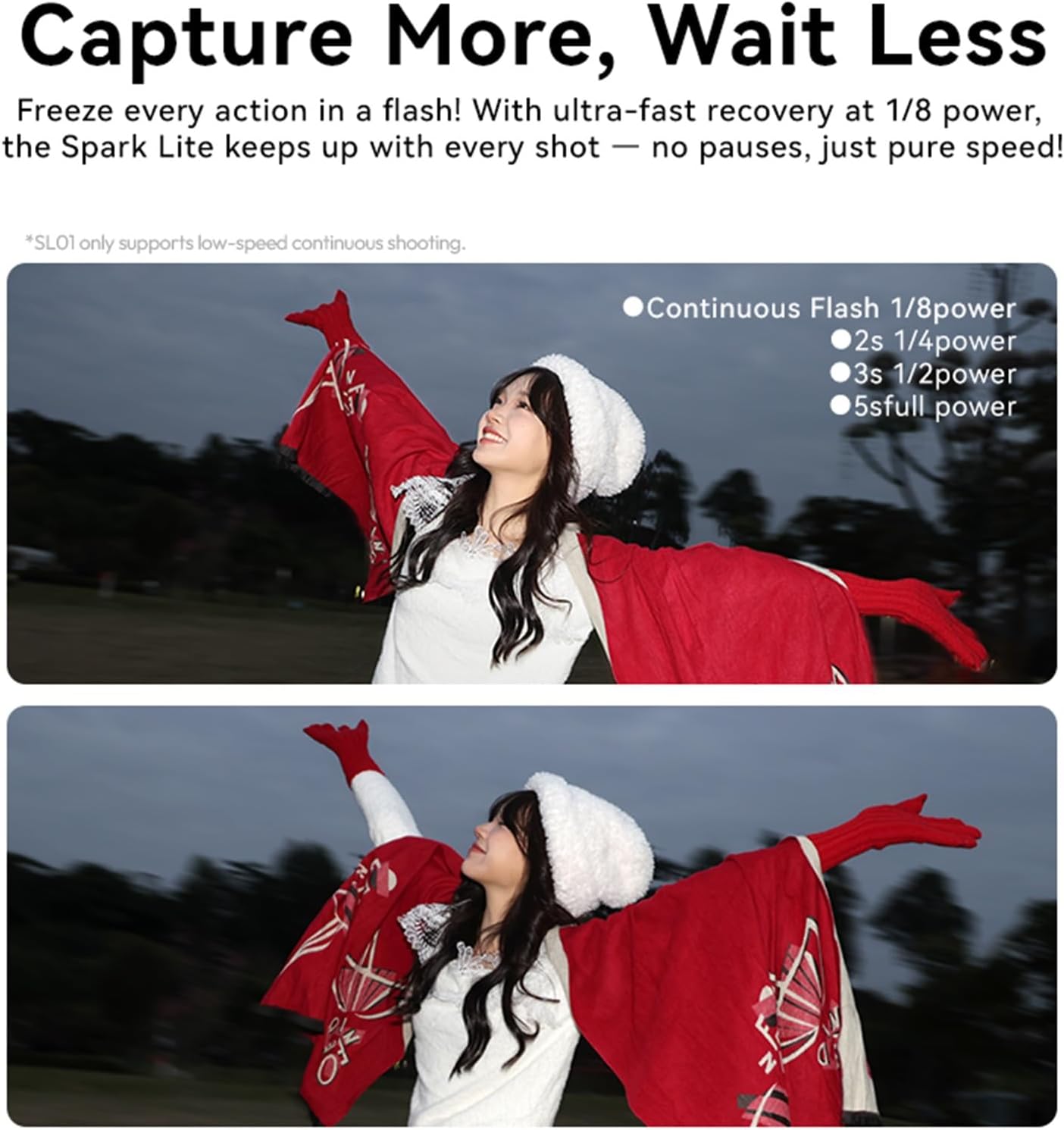 【Adjustable Brightness Flashlight(GN8 Flash Index)】The ULANZI mini camera flash and video light offers 4 adjustable brightness levels (1/1, 1/2, 1/4, 1/8) to suit various shooting scenarios, including close-up portrait shots. As it’s a single-contact flash, ensure the camera’s shutter speed does not exceed 1/250s for optimal results.