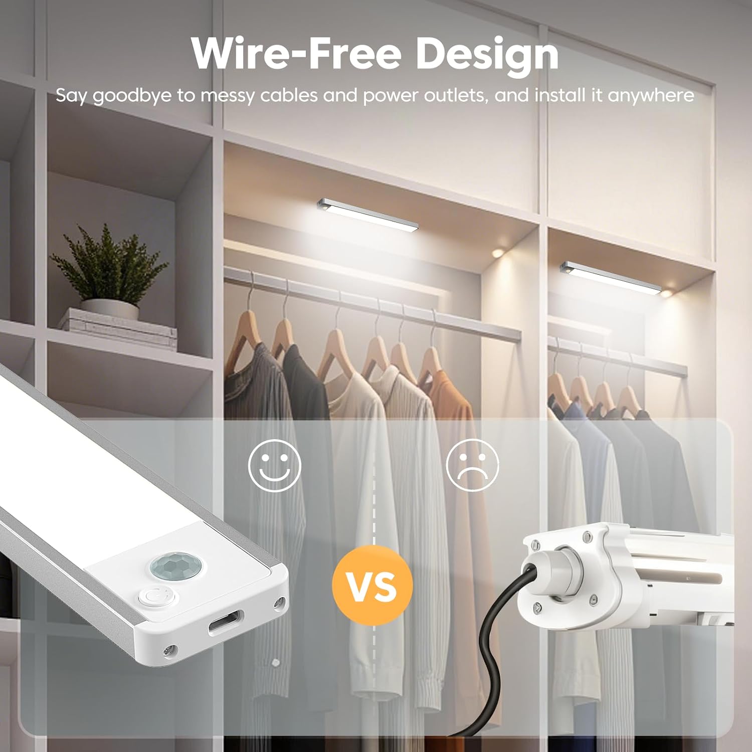 Magnetic Under Counter Lights – Tired of complicated installations? Our stick on lights for under cupboards are your simple, drill-free solution. The built-in magnets let you securely snap them onto any steel surface—no tools, no hassle. For all other surfaces like wood, tile, or glass, the motion sensor cabinet lights come with 6 magnetic mounting pads and 2 screw kits, allowing for quick installation on non-metallic surfaces such as wood or tile.