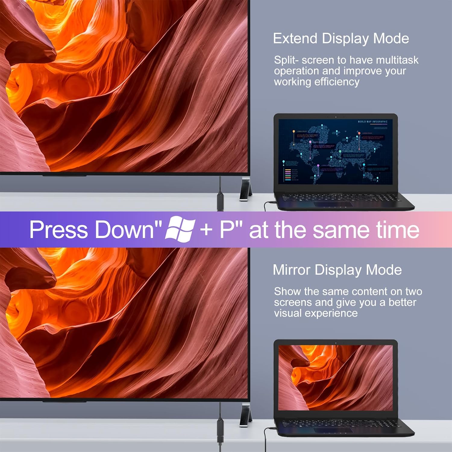 【Reliable & Compact Design】Our Type C to hdmi adapter is designed with advanced IC chip to ensure stable signal transmission. Premium aluminum housing for better heat dissipation. Compact design fits snugly with the USB C Ports on your devices.