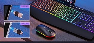 RGB Rainbow Backlight: Virfour wireless keyboard and mouse set comes with rainbow backlighting. Wireless keyboard has three adjustable brightness levels (Fn+End),and wireless mouse has 22 colours to choose from, bringing your desktop to life in no time!