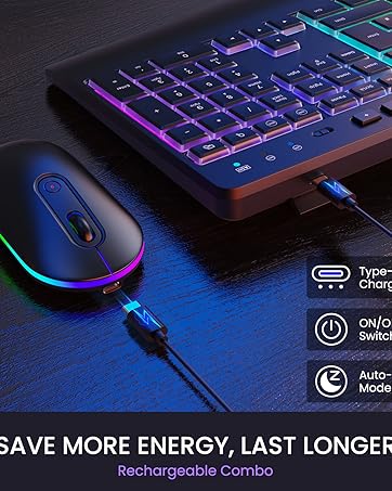 Wireless Rechargeable Keyboard Mouse: Wireless gaming keyboard and mouse with automatic sleep function, and built-in rechargeable lithium battery, do not need to replace the battery frequently. Warm tips: after receiving the product, please charge it for three hours first to bring a better using experience.