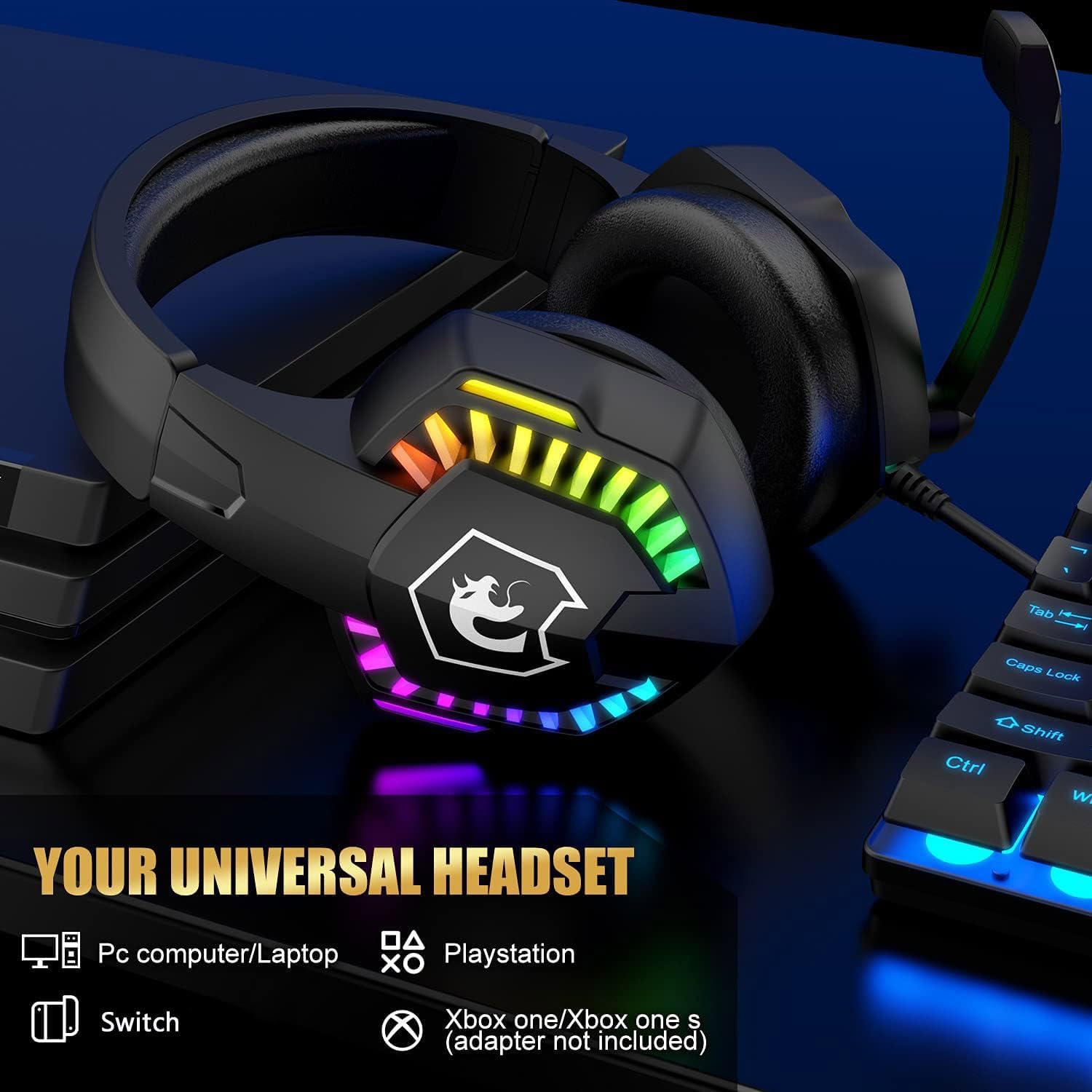 【Comfortable and Stylish Gaming Headset】This wired headphone is equipped with 40mm speaker driver to carry a higher sensitivity and strong frequency sound, adjustable head beam&soft top cushion&comfy earmuff to offer a better wearing experience for a long time, adjustable microphone to collect and deliver your voice from all direction, cool RGB lights to highlight the gaming atmosphere, perfect for gaming or listening music.