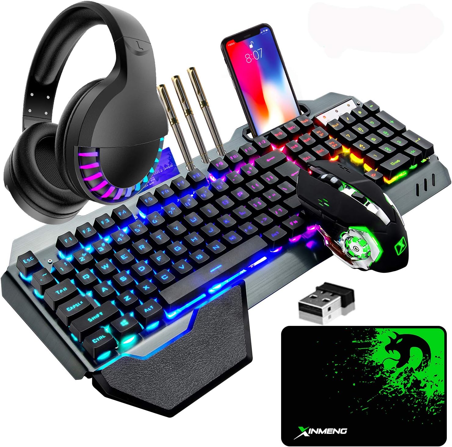 7 Breathing LED Mouse This wireless gaming mouse has a cool motor-shaped appearance with 6 buttons, 7-color breathing LED backlight, 4-level DPI (800-1200-1600-2400) and soft mouse paw pad, silent clicking, flexible sliding, adjustable DPI, breathing backlight, this keyboard and mouse combo can compatible with Windows 2000/XP. /7/7 8/10/10/Vista etc.Perfect for gaming or working or daily use.