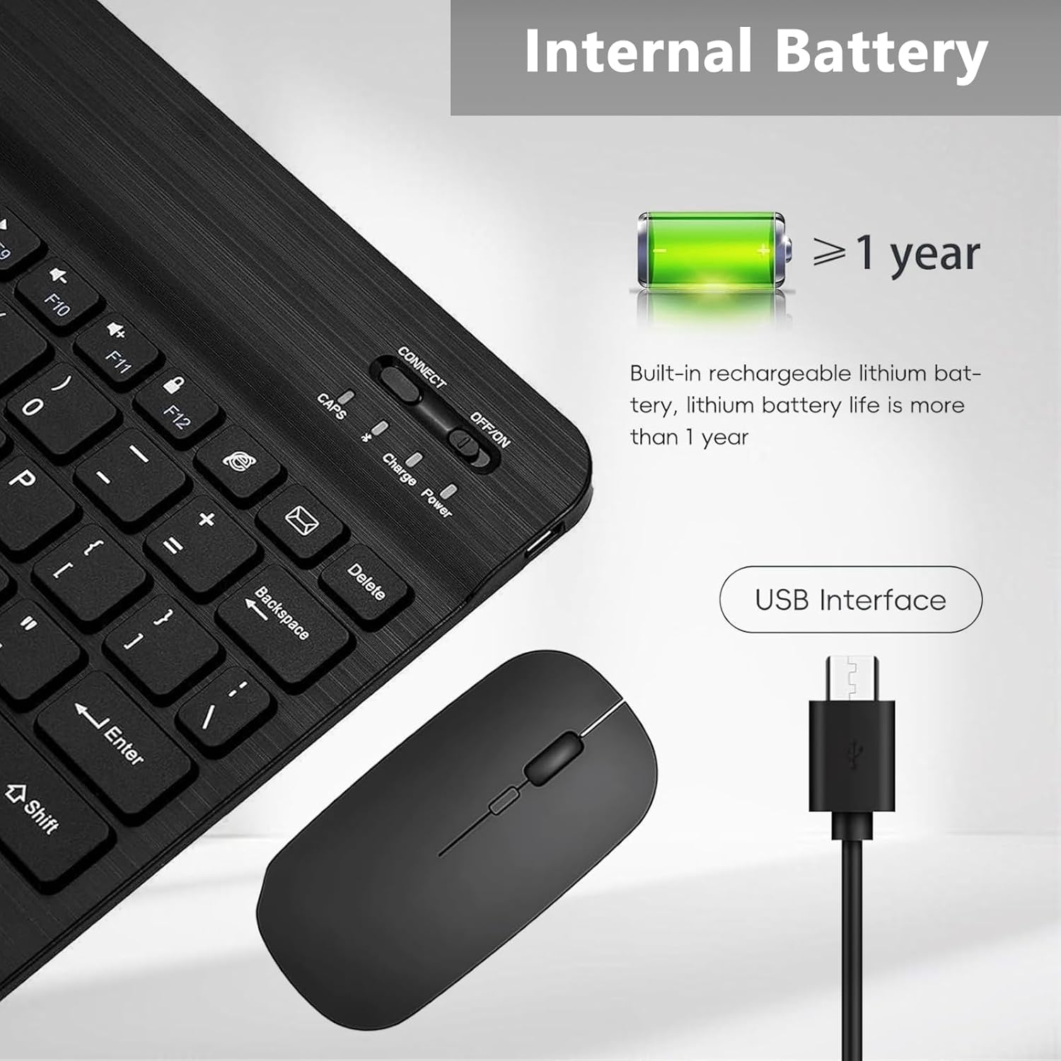 ✅【Non-Slip Design】: There are four rubber feet on the bottom of the tablet keyboard and mouse to prevent the keyboard from slipping. Simply place keyboard and mouse on your desk or table and type as you wish