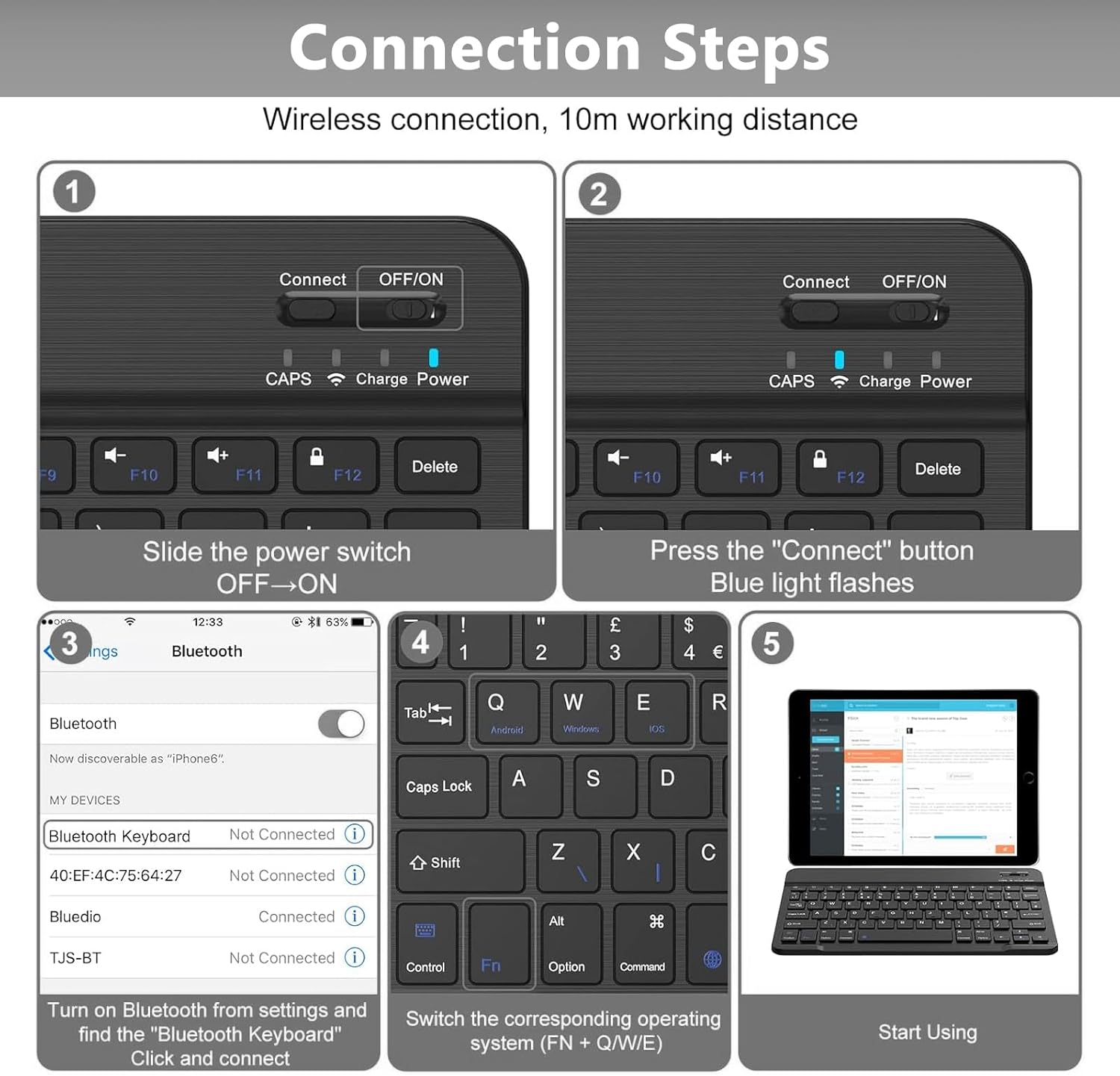 👍【Ergonomic Design】- This keyboard and mouse set is designed for comfort and ergonomics to reduce hand fatigue for long hours of work and play.So this Bluetooth keyboard and mouse is a great choice(𝐏𝐥𝐞𝐚𝐬𝐞 𝐊𝐢𝐧𝐝𝐥𝐲 𝐧𝐨𝐭𝐞:Firstly, our keyboard and mouse does not support switching between multiple devices directly. You must disconnect before you can reconnect to other devices. Secondly,This product will automatically go into sleep mode if not used during the session. Please reconnect.)