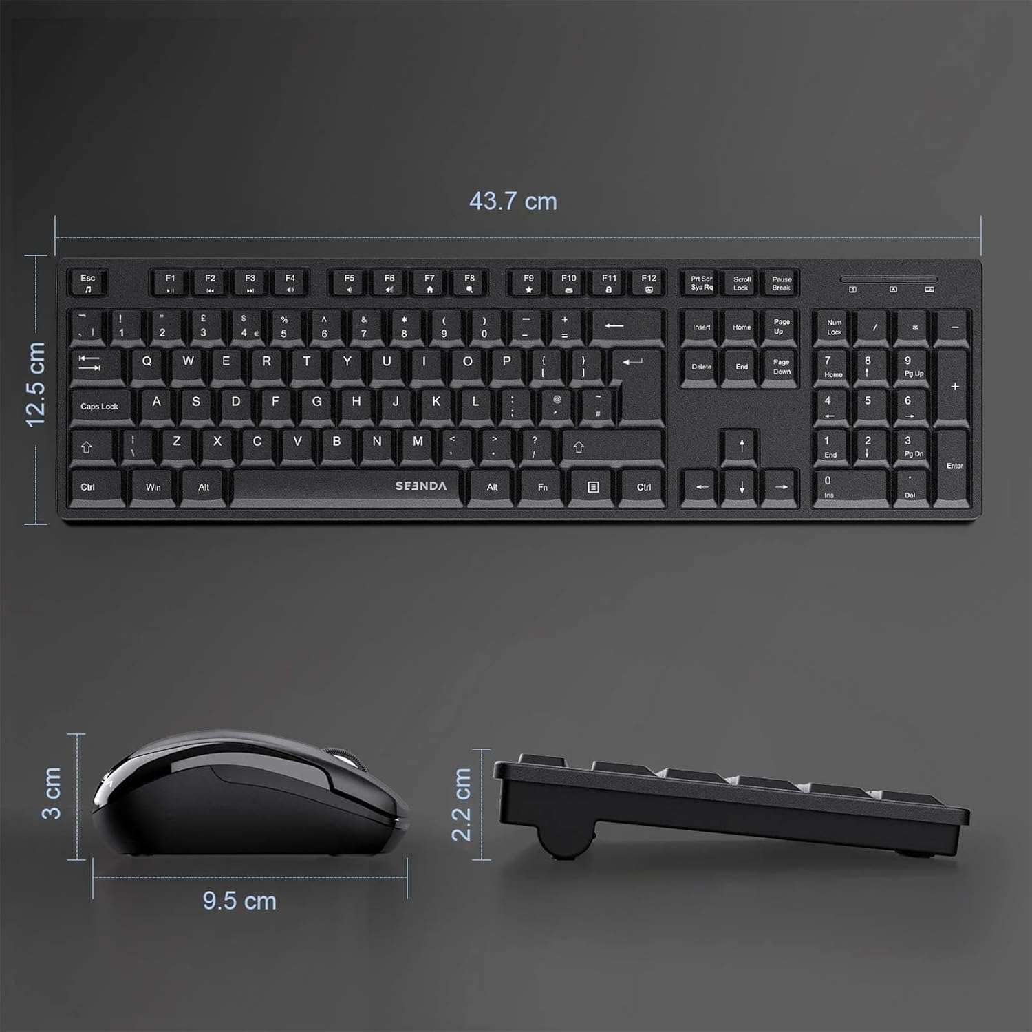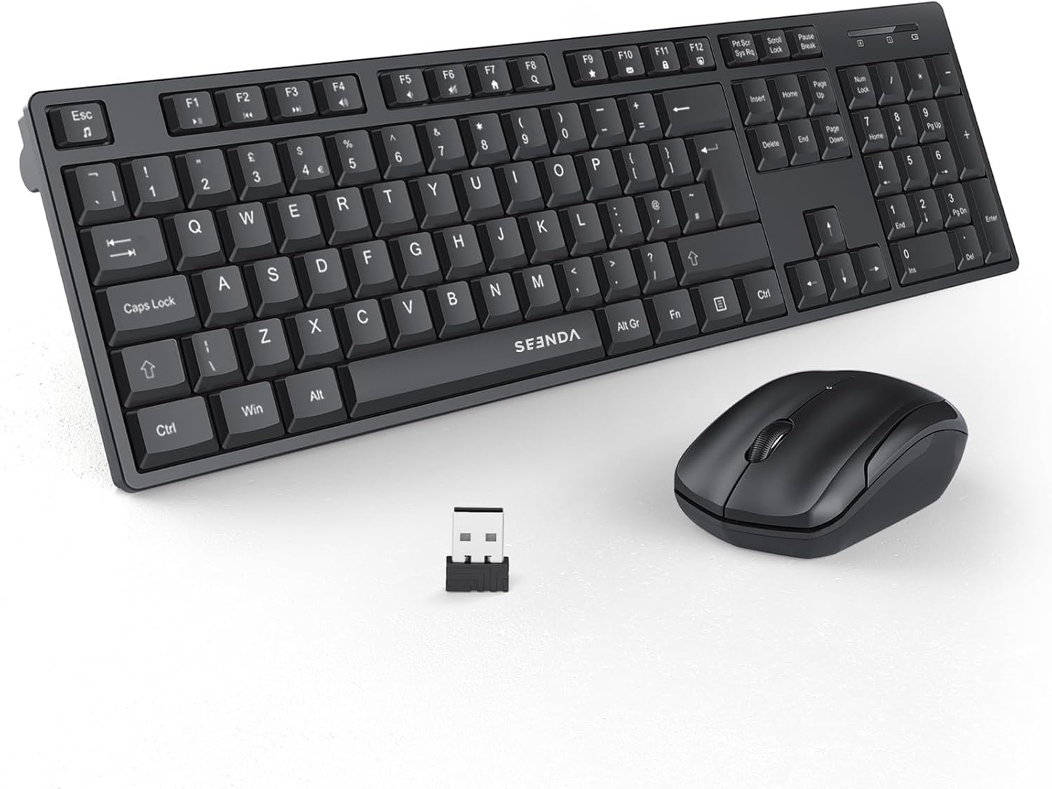 Full Size Design with Multimedia Keys and Numeric Keypad: Functional keys F1~F12, ESC key can easily have an access to Email, homepage, search, volume control etc. And a numeric keypad is also included. This wireless keyboard is perfect for office use, you can type on the familiar full-size keyboard UK layout with 105 keys.