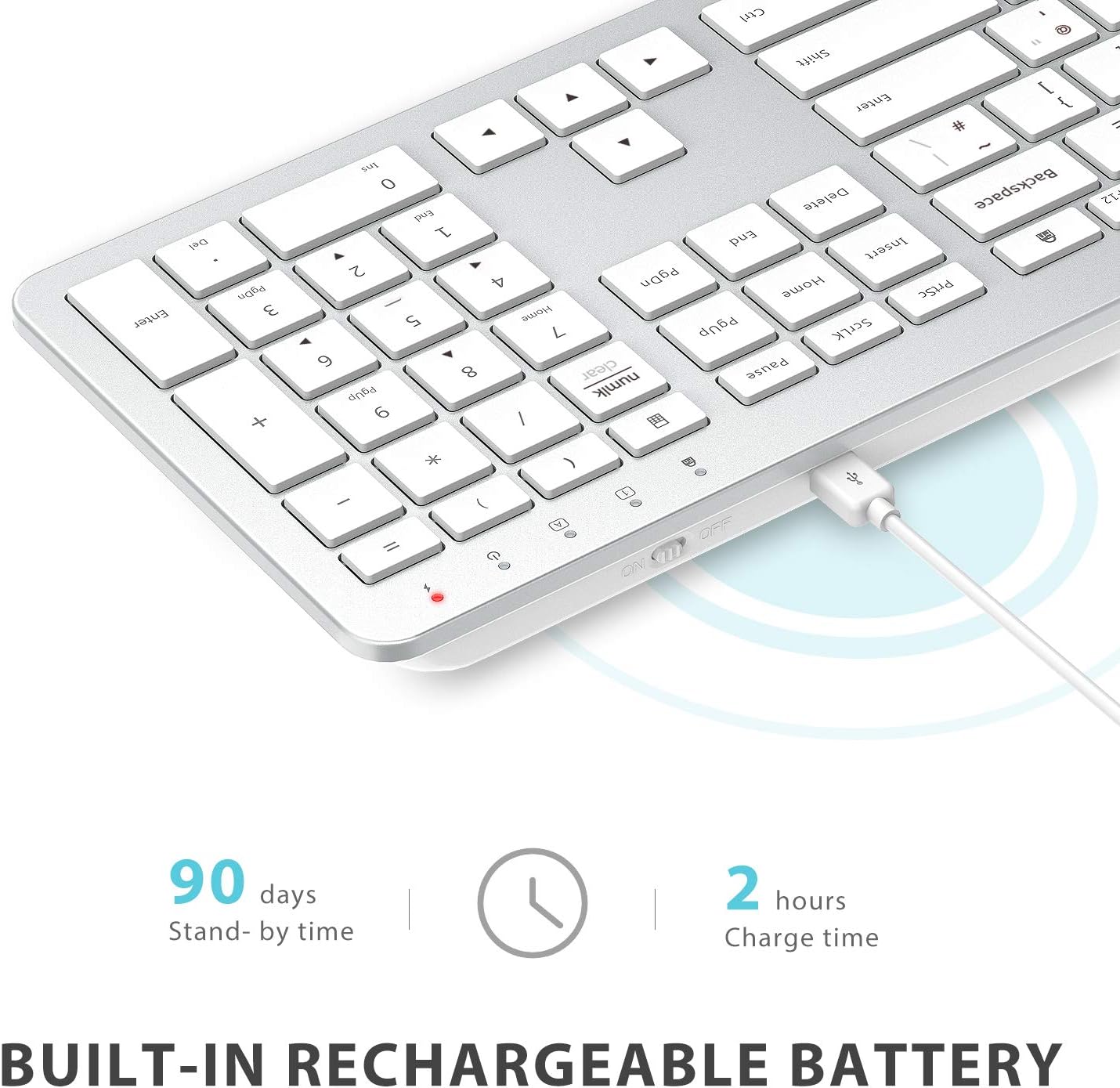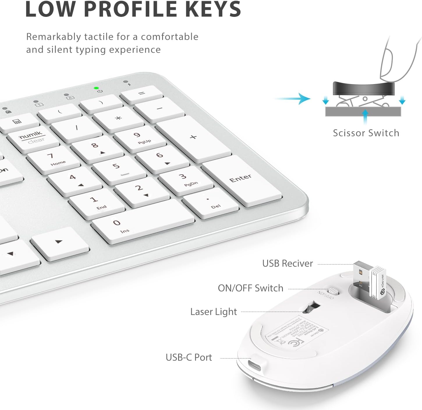 Energy-Saving Mouse and Keyboard: With lithium-ion battery, the rechargeable slim keyboard gives you up to 90 hours of endurance ability on a single charge. No worries to change batteries frequently. Both the keyboard and mouse will go on standby to save energy when you are not using them, Just one click to wake up.