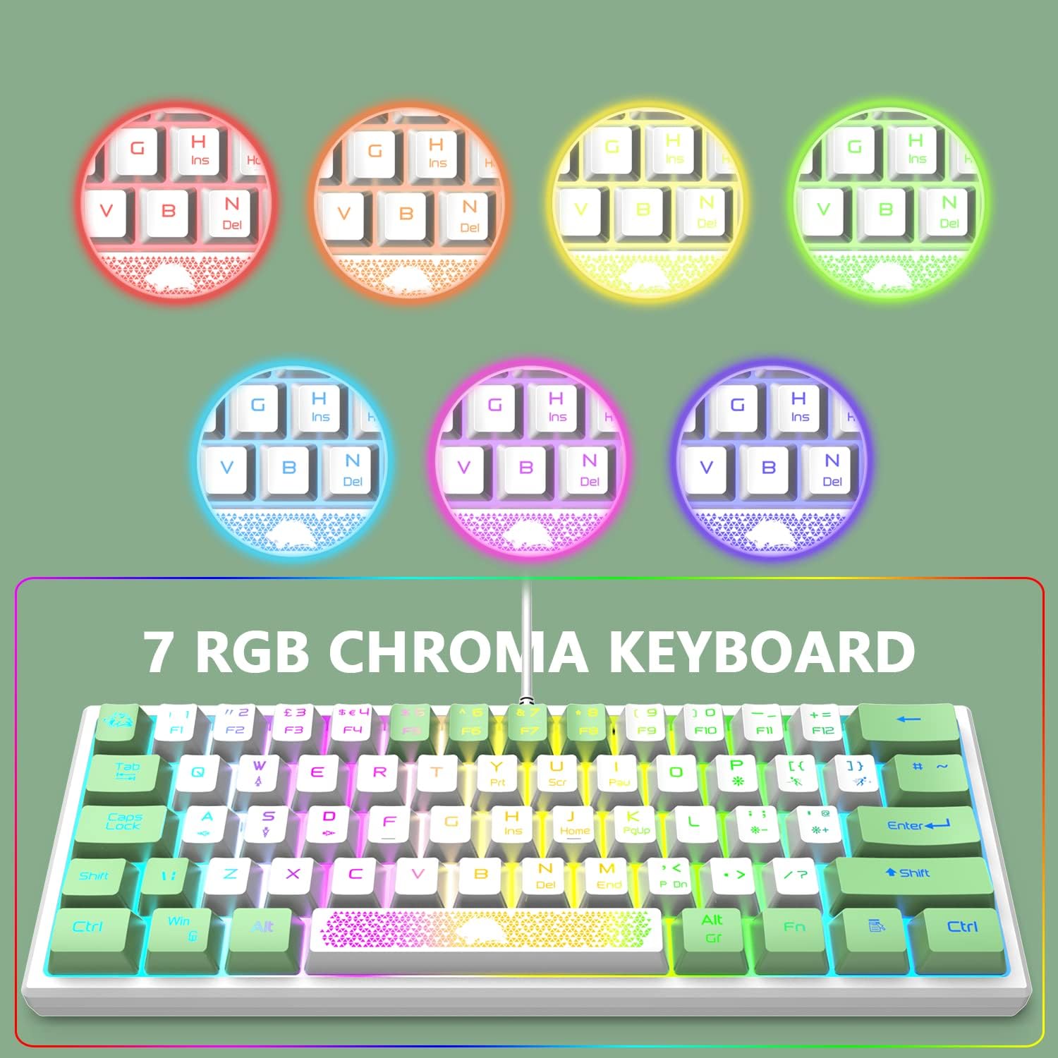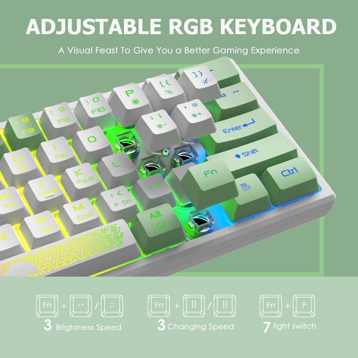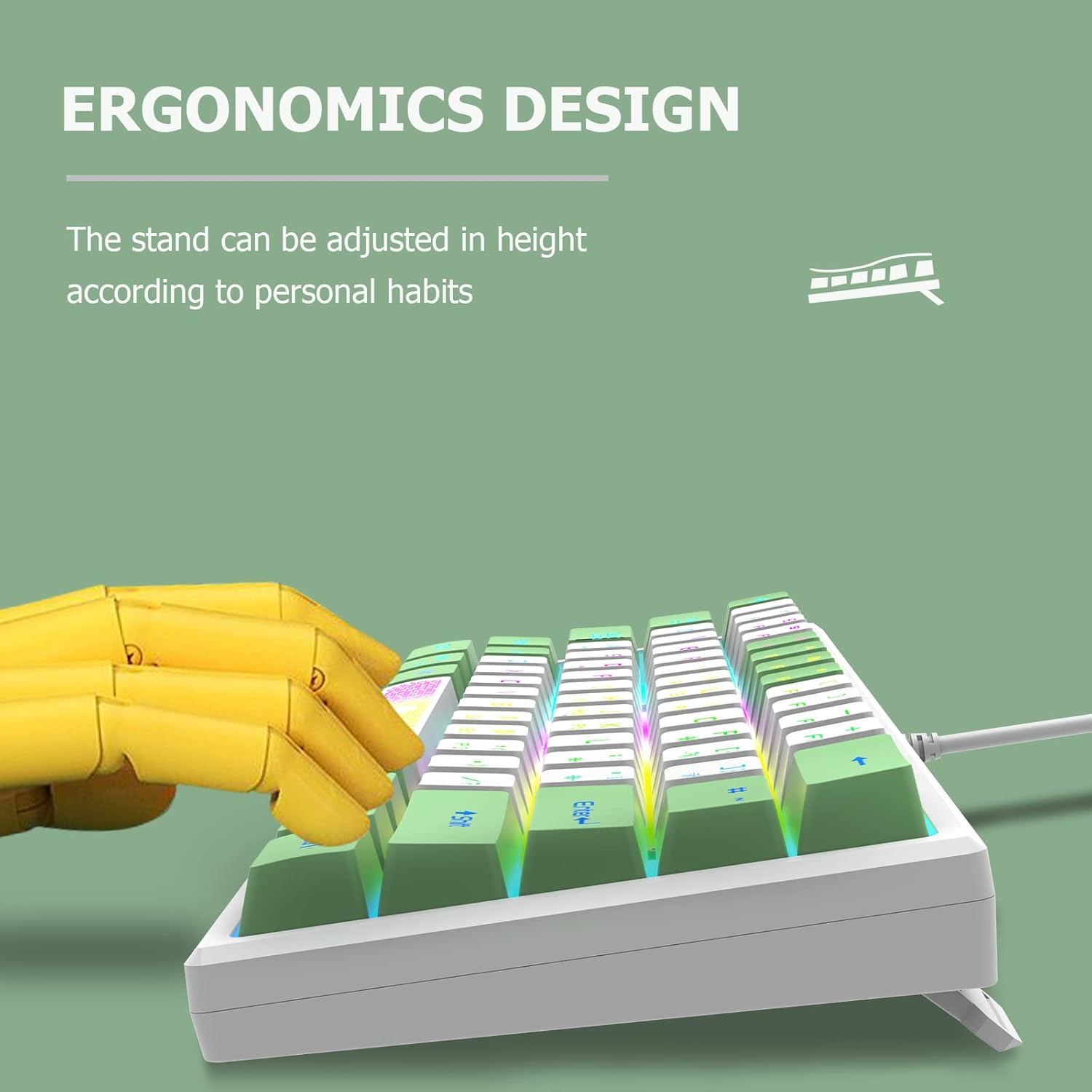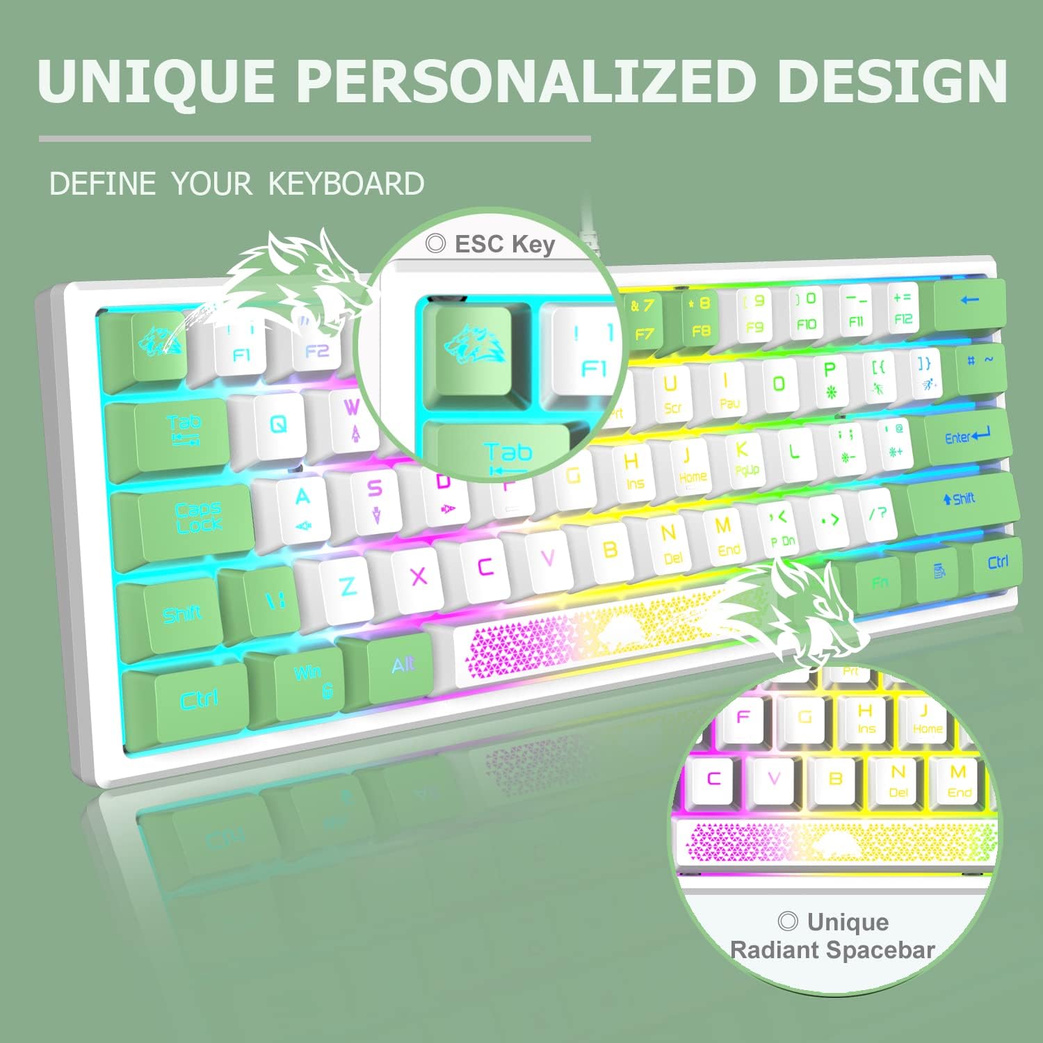 【60% Percent Gaming Keyboard】 Mini compact keyboard 62-key layout, small size and big functions. Compress the shape by 60% without reducing the functionality of the number keyboard. The size is only 11.8*4.3*1.2 inch, it can be easily installed even in the narrowest space, bringing a comfortable gaming experience.