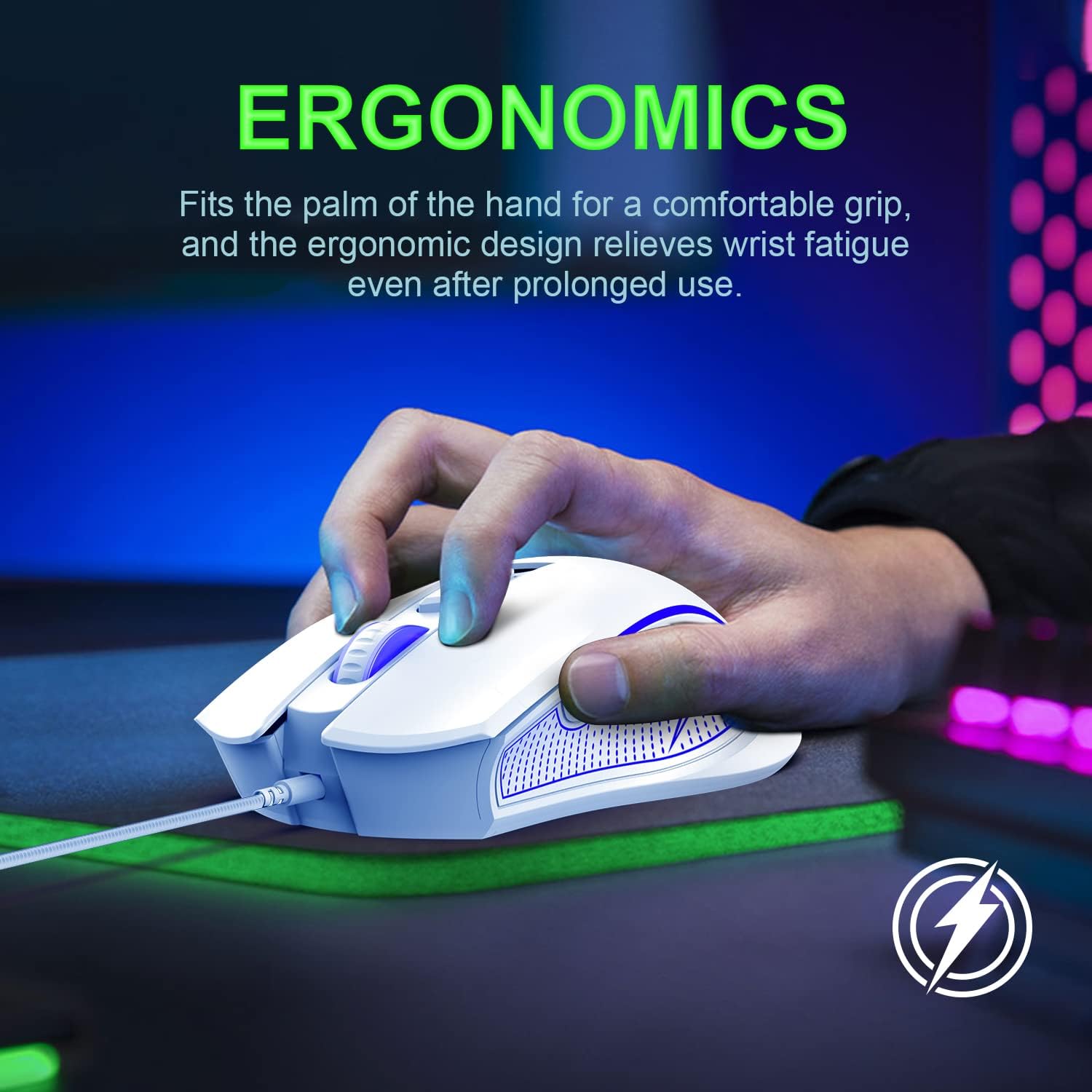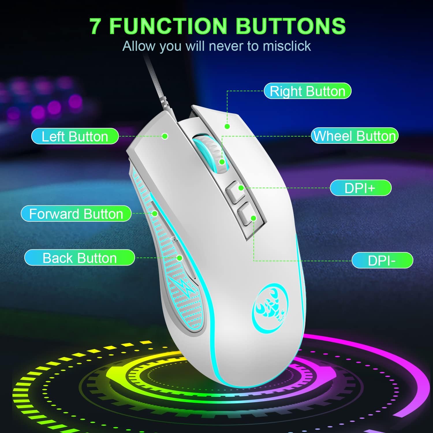 【Keyboard & Mouse optical LED sensor technology】Gaming keybaord and mouse optical sensor, with 7-color backlight breathing, etc., to highlight the atmosphere of the page when playing games, if you feel that turning on the light is a waste of power, or it is not suitable for work, Long Press DPI – button 3 seconds to turn off or turn on led light.
