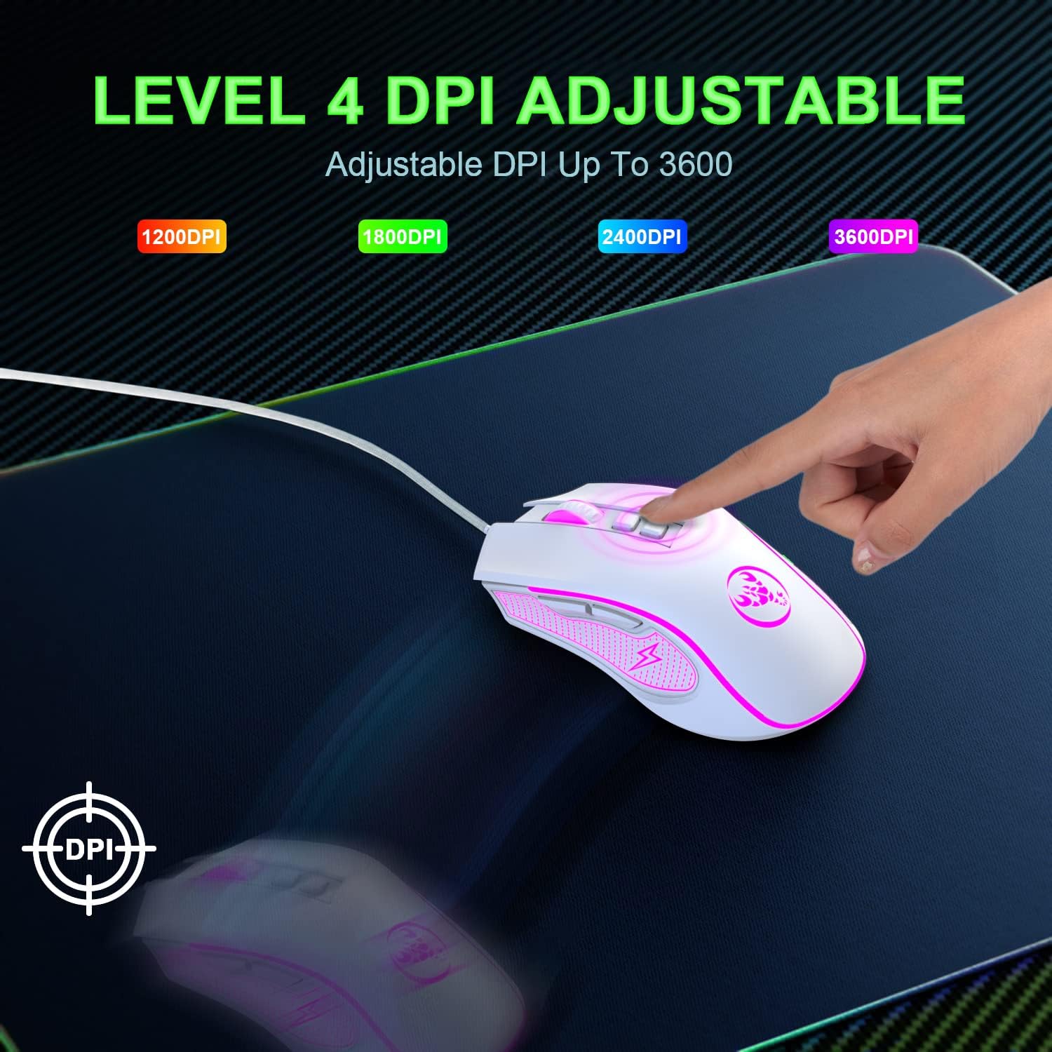【Mouse-4 Adjustable DPI and Flexible Buttons 】 Gaming mice Adjustable DPI speed switch: 1200-1800-2400-3600, easily and casually control the speed. Plug and play, no need to download other drivers. 7 buttons, Left/Right/Middle /forward/back/DPI +/DPI-.adjustable sensitivities for games and daily business needs. Easily adjust to instantly match mouse speed to different games.