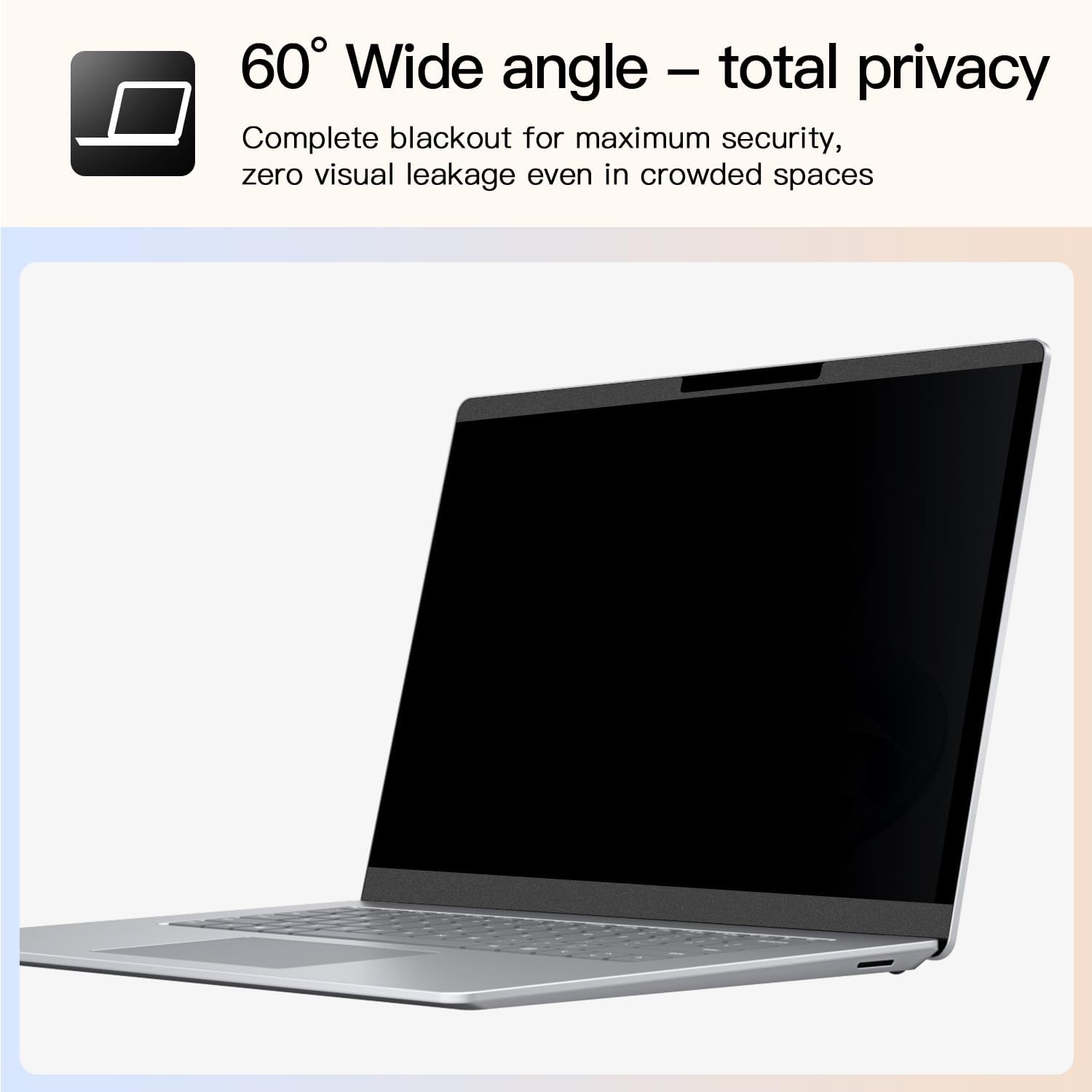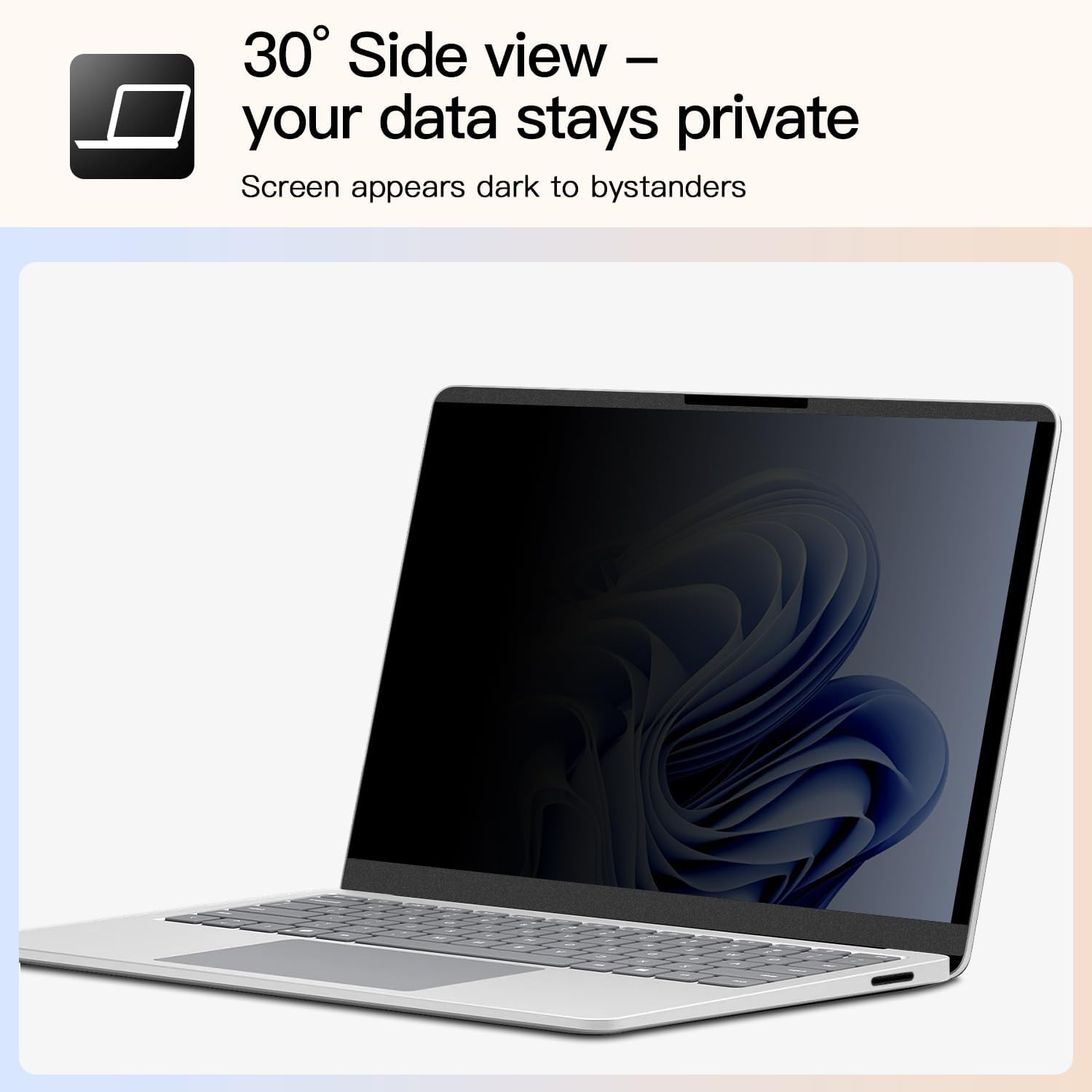 30-Degree Side Privacy Protection:The surface laptop 15 inch privacy screen is engineered with precise horizontal privacy technology,blocking prying eyes from the left and right within a 30-degree angle.Keep your sensitive data,messages, and content visible only to you while using your laptop in public spaces like cafes,offices,or commutes.